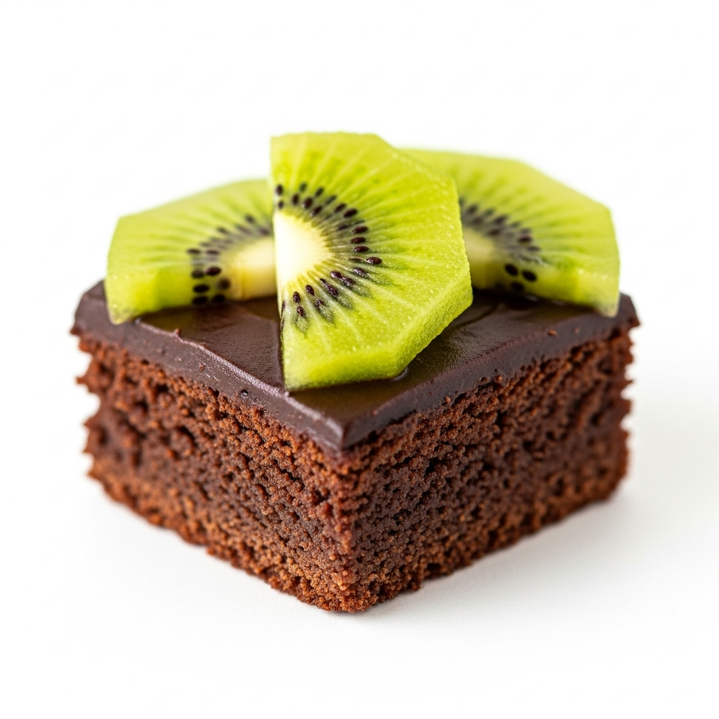 Mini brownie a base de cocoa, mermelada natural y trozos de kiwi.